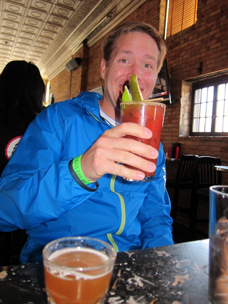 After the race, we were chilly and decided to use our free beer coupon indoors at the Liffey, a local pub, instead of the official post-race party. Unfortunately, the Liffey would not serve us the post-race beer without our ID’s, which we didn’t bring since we had waited in line at the expo for the bracelets! That was a little frustrating- the green bracelets were a waste! We decided to skip the free beer altogether, and headed to the Bulldog NE for some lunch.