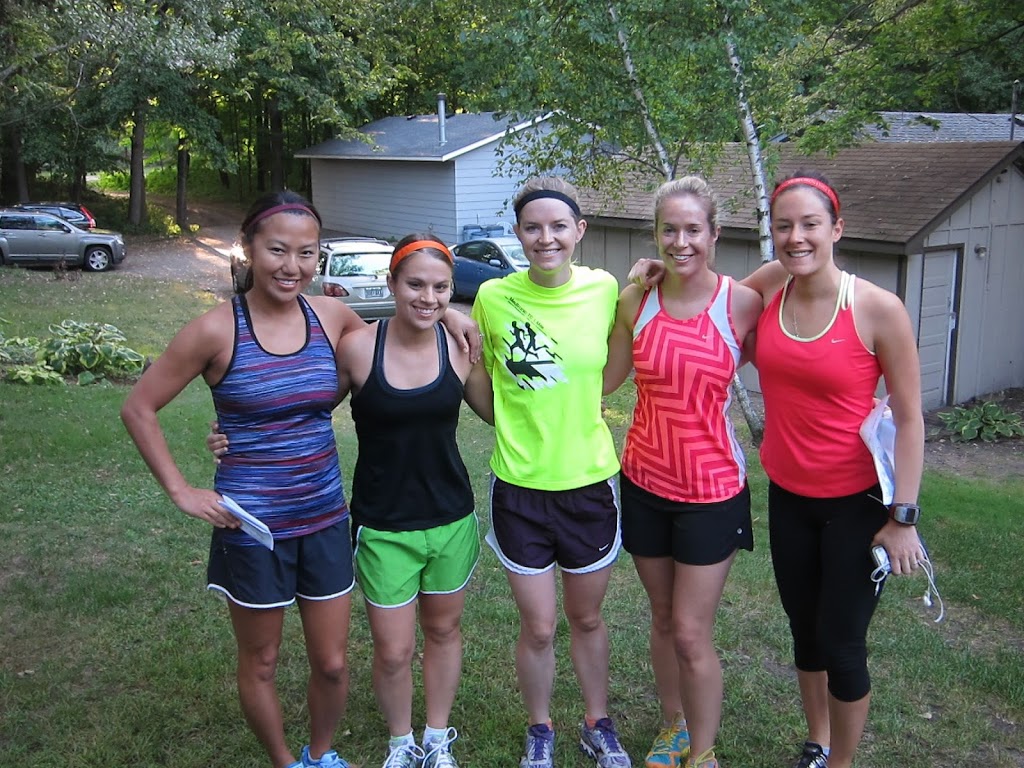 But for now, we take our “fits” to a small cabin town in Minnesota, where 13 lovely ladies- almost all Calhoun Beach Run Clubbers- assembled to toast the bride-to-be.