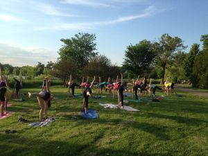 I am most familiar with two outdoor yoga classes- Yoga by the Lake, hosted by Meggan of the Yoga Garage, and Savasana at Sunset, hosted by Emily of Luminous Yoga!