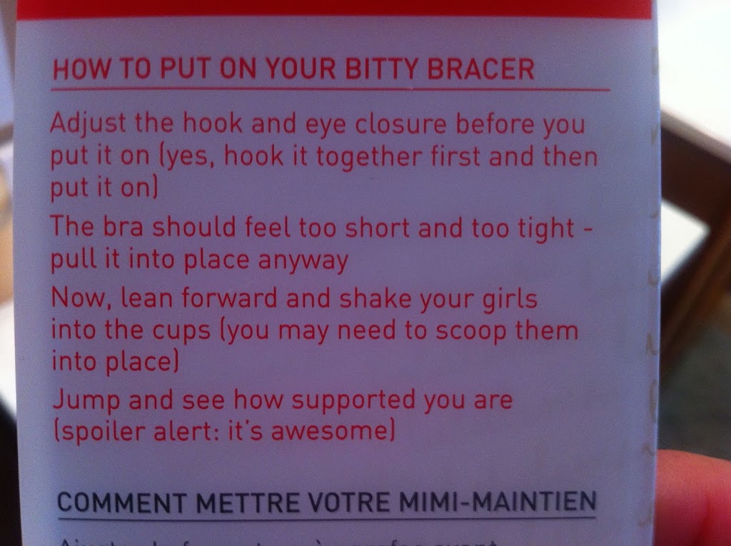 Well, maybe I should have. When I finally put it on, I couldn’t even get it over my boobs! I’m definitely not a D cup, so I was really confused….what’s the deal? Is the bitty bracer only for the itty bitty? I sent my friend a frantic text. How the heck do you get this thing on?