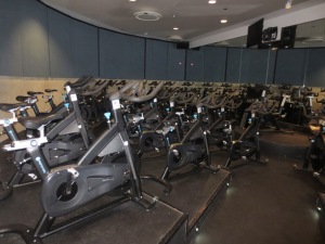 …and made our way into the spin room to find our spots. An employee came around and helped us adjust our bikes, as well as offer padded seats to put on the bikes.