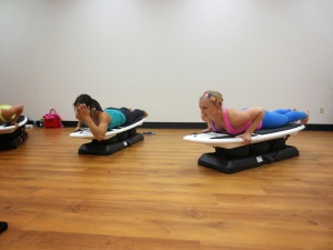 Here’s the scoop: my friend Meggan of the Yoga Garage (the same friend who joined me for Salt Cave Yoga– she’s great!) invited Dustin and me to join her and her partner (who works for Anytime Fitness) to check out a Surfset fitness class last night at the Inver Grove Heights location of Anytime Fitness.