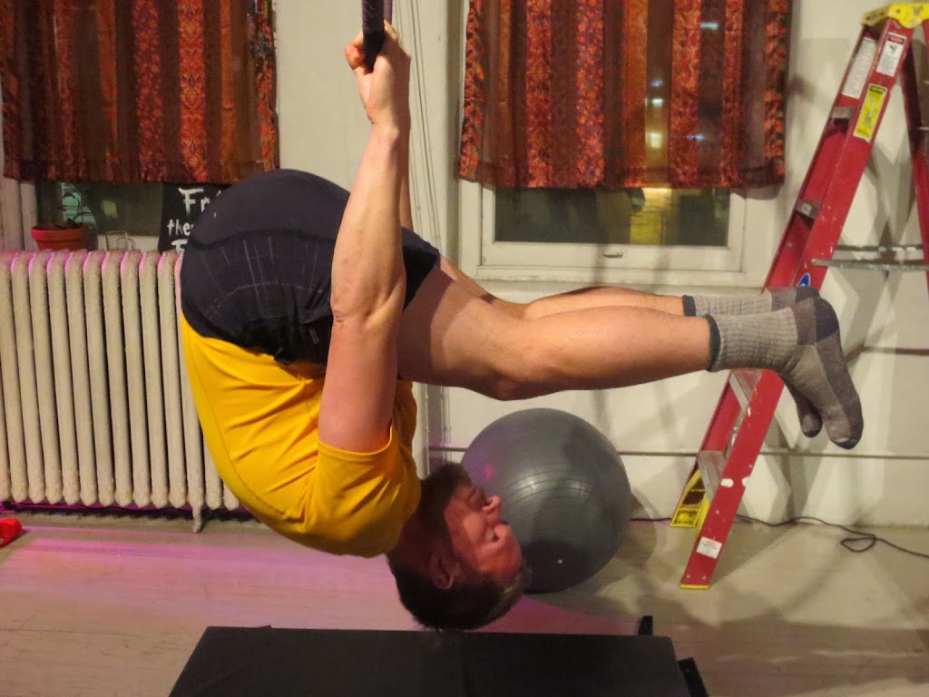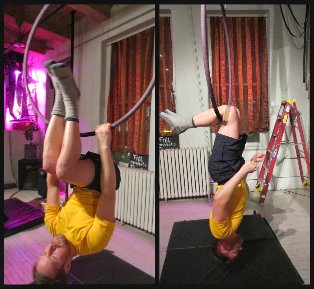From there we would swing our legs up over the lyra until we were hanging from our knees.