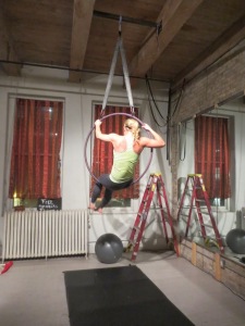 We finished stretching, and the instructor told us we’d start the evening’s class on the lyra. Fun!
