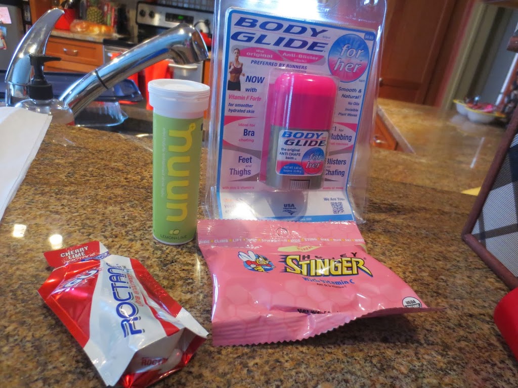 This basket included a lot of running related items- some Body Glide, Nuun, an iTunes gift card, Honey Stingers, GU’s, and more.