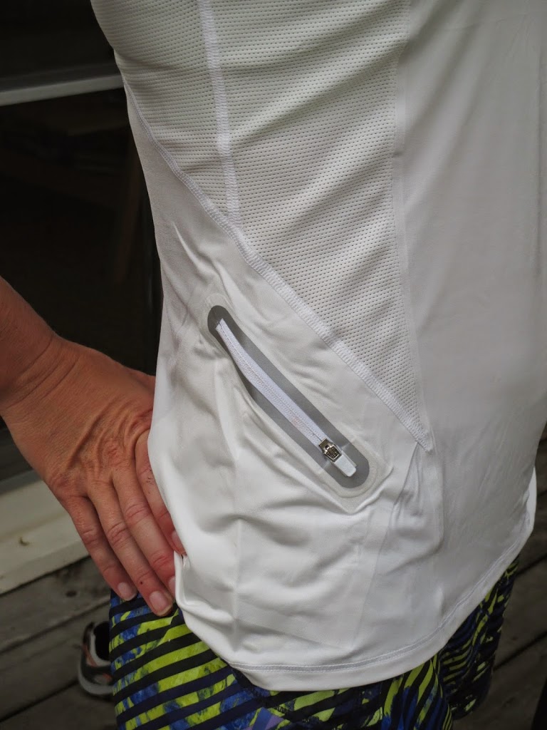 Here’s one of the best features of the Forerunner Tank- it has a zippered pocket for your GU’s or keys on the side! I love it!