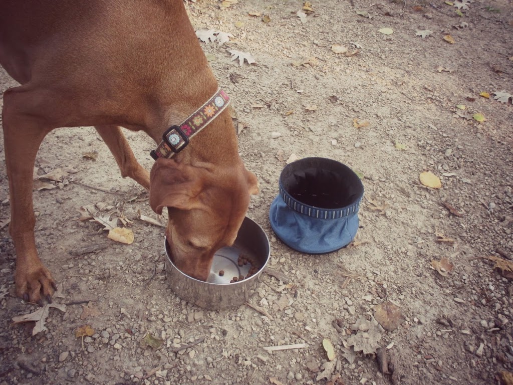 But for just two meals, we were able to bring along her normal food and feed her out of one of the camp bowls that we brought along. We used her portable water bowl that we often bring to dog parks and that worked just fine.