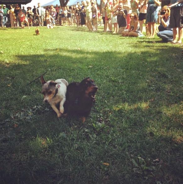 Since it has been a really wet summer, we were worried that this park would be flooded, or at the very least, extremely muddy. Yet we went over Labor Day weekend, and it wasn’t bad at all! We spent about an hour and a half letting Tilda run crazy at the park, before heading to..drumroll please….THE WIENER RACES at Lake Nokomis!!!