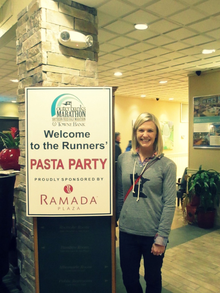 To make things easy on ourselves, we decided to go to the marathon sponsored pasta feed that was held at the Ramada Nags Head. It was $12/person and was all we needed. The meal before the marathon is never anything special.