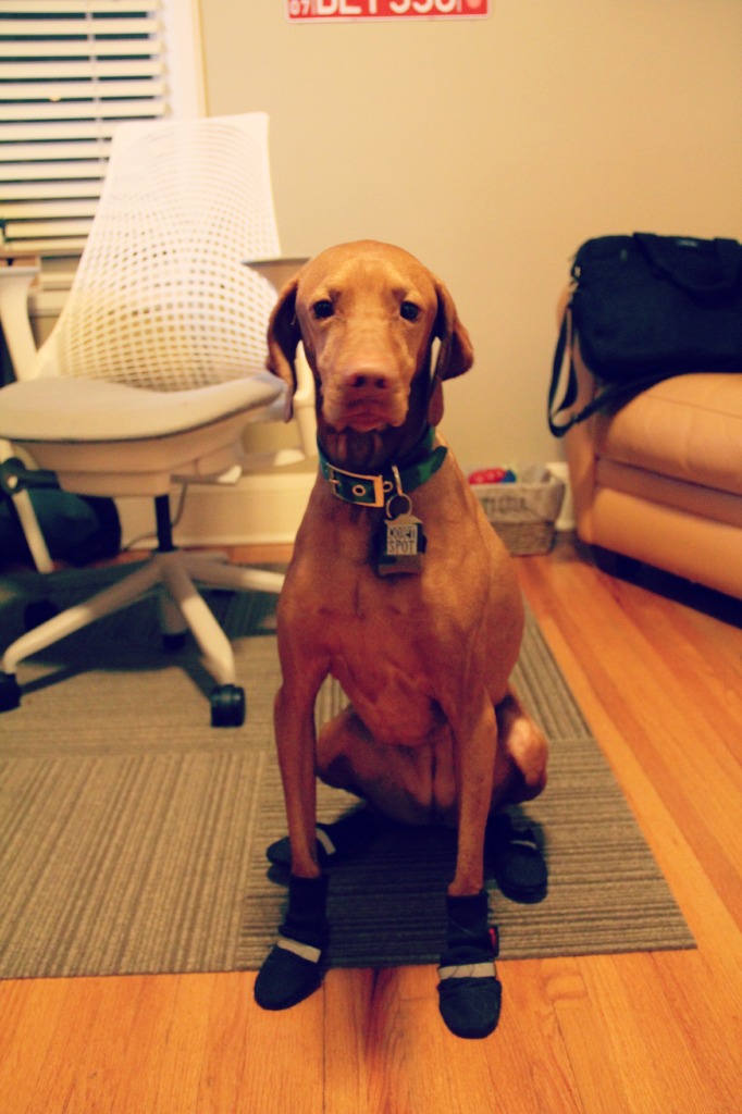 Instead of boots, we usually use Musher’s Secret, which is a salve to put on her paws. It gives them some protection and is supposed to help keep the paws from cracking. It’s natural and permeable (for sweat).