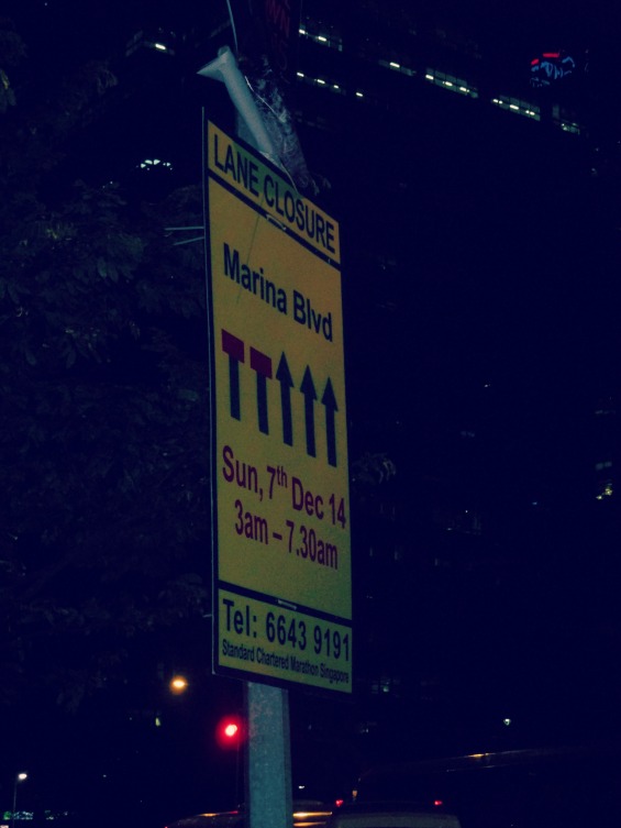 There were signs up for the marathon tomorrow. Singapore is so condensed, it’s hard for me to imagine what the marathon course will be like. I have looked at the course map and I think I will go watch towards the finish area.