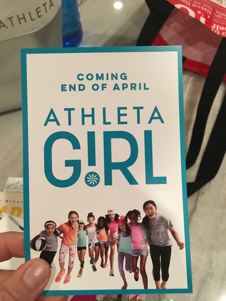 There was also a flier advertising the arrival of Athleta Girl! I know my niece Maggie, who wrote this guest post about lululemon’s sister brand IVVIVA will be excited about this new store!