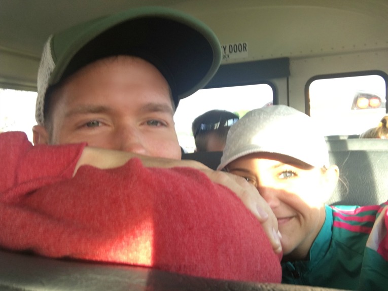 (a selfie on the bus ride to the start. There was no need for warm clothes at the start, it was already 72 degrees!)