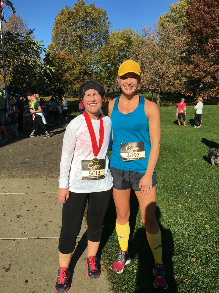 As I mentioned in my weekly recap, I ran the Hot Cider Hustle Half Marathon last Saturday, October 22nd with my friend Vicki. I wasn’t racing it for me, but rather paced/ran with her. Her previous PR was a 2:04 and her goal was to run under 2 hours.