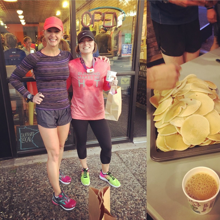 Friday: 7 birthday miles at Flapjack Friday. The official Flapjack run doesn’t start until 6:30 am, so I met my friend Christie beforehand for 4 miles so we wouldn’t be too late for work.