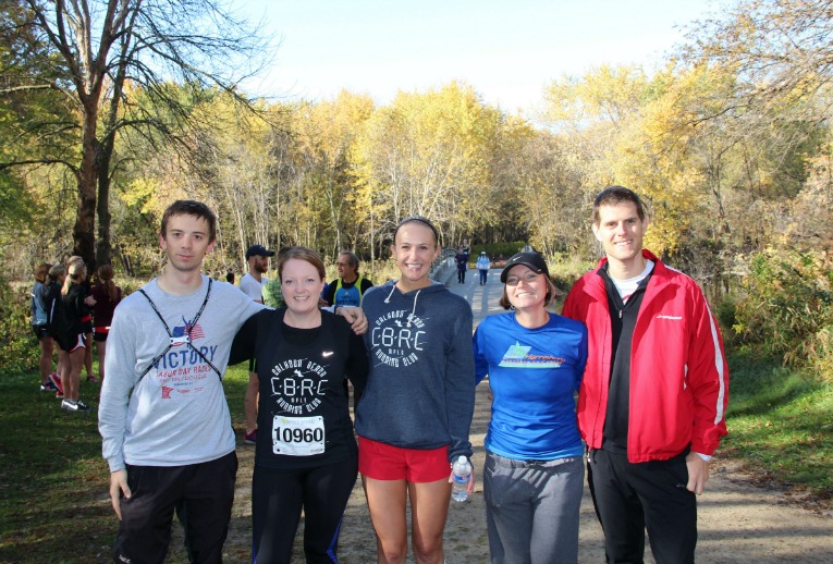 The day started with a 15k trail relay race at Pike Island. This race was part of our running club’s USATF race circuit. It was a blast! It was a beautiful course around Pike Island at Fort Snelling. The island is a perfect 5k. Teams of three women or three men raced the 15k, i.e. 5k each. (Below pic is missing one of the men from our guys’ team)