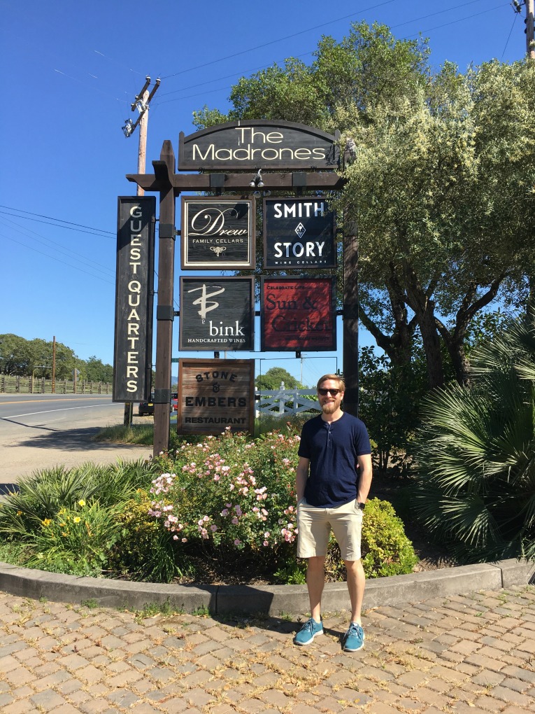 Then we headed back to the Madrones where we went to the Smith Story tasting room right on the property. (So convenient- and great wine…and the cutest golden doodle named Sandwich. I wanted to take Sandwich home with me.)