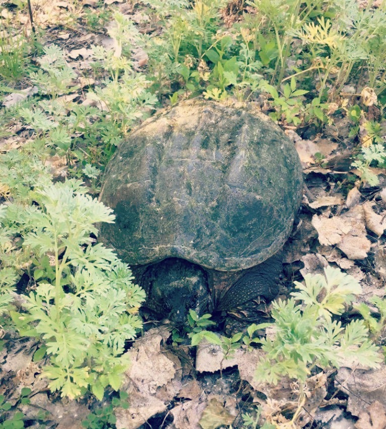 First, I saved this huge snapping turtle who was trying to cross a busy road. He wasn’t happy about it, but I picked him up and moved him back to safety.