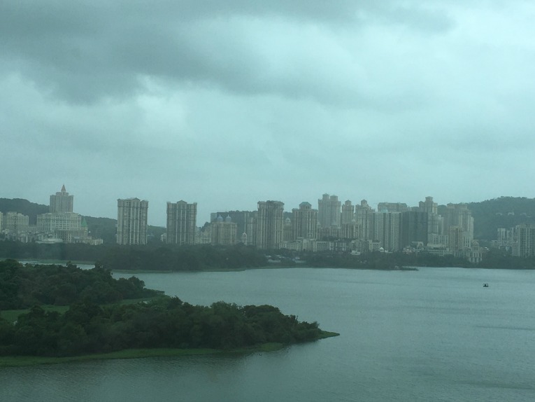 Here’s my view from the treadmill. It’s monsoon season in Mumbai, so I have a feeling that I won’t see a lot of sun!