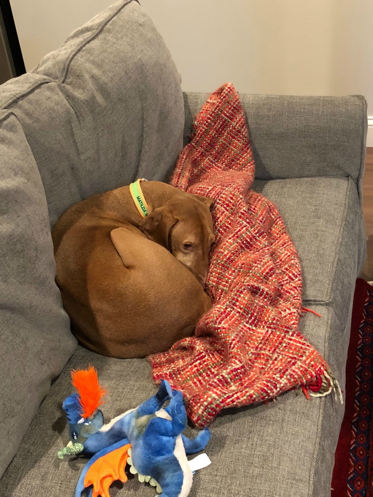 Eventually she decided I was too boring, so she settled onto a couch in the basement instead…I know how you feel, Tilda. It was a big week, I’m tired too!