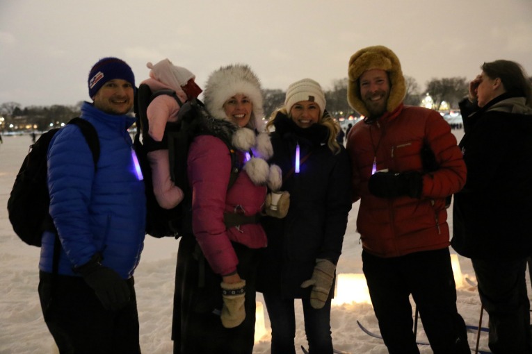 That evening, we met up with my sister and her family at the Luminary Loppet on Lake of the Isles. It was quite cold, but we did the full 2.5 mile or so walk around the lake, stopping for a Surly beer (for the adults) and a hot chocolate and fire-roasted twinkie (for the kids.)