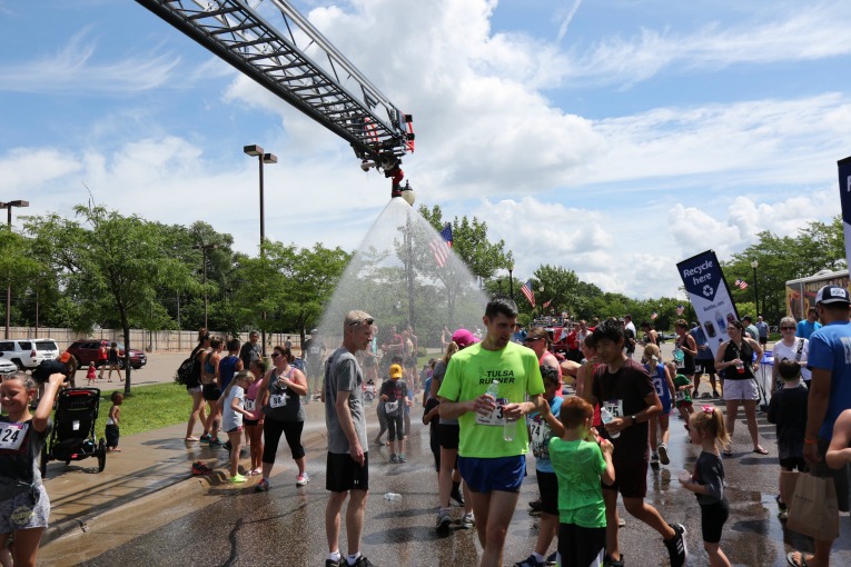 The 1-mile is at high noon on a hot, hot July day, but there were plenty of watermelon, oranges, water, and a fireman’s hose to cool you down at the end!