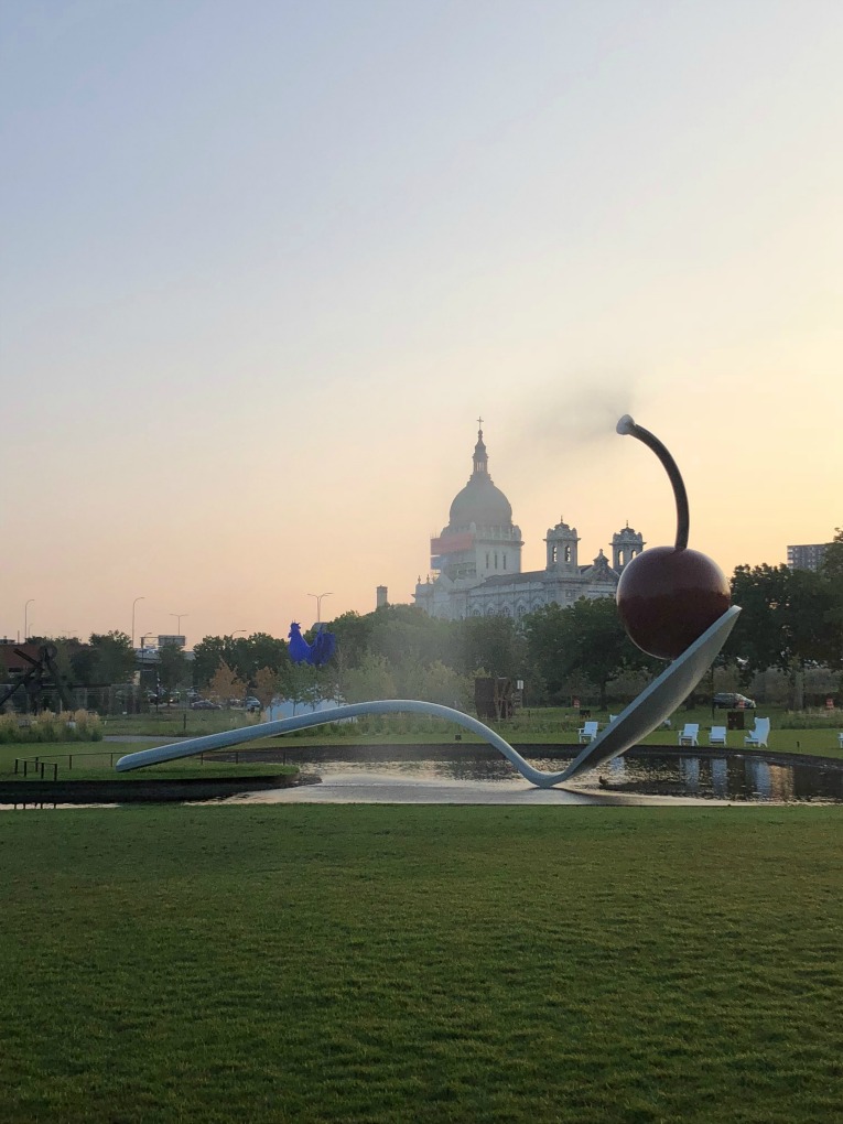 The Sculpture Garden in Minneapolis has tons of great art- but the spoon and cherry is the most famous as a city landmark.