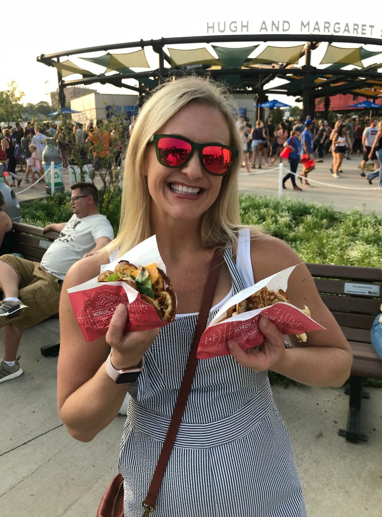 For example, we tried the new Nordic Waffles stand. We had both the vegetarian waffle and the S’mores waffle. Delicious!