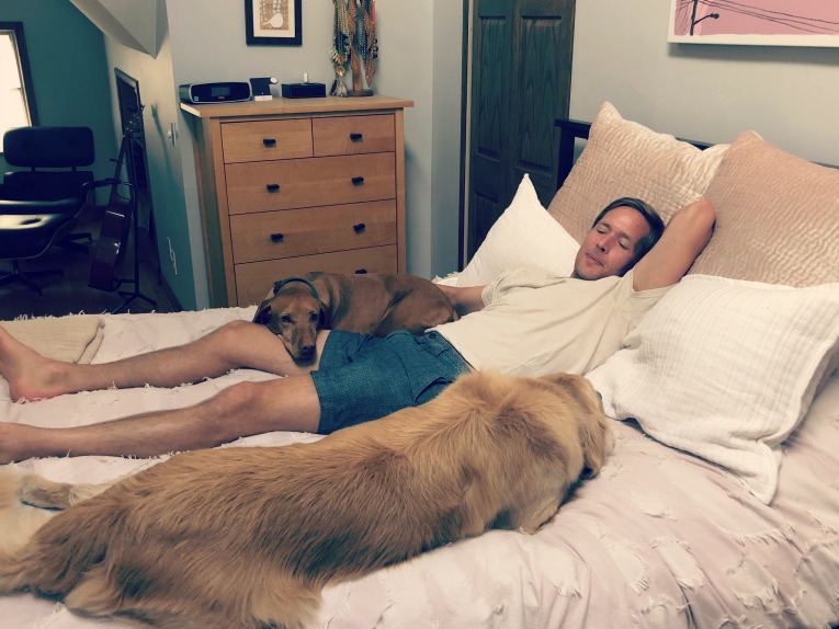 Running in that heat really wiped me out…Dustin too! He had a 20 mile training run for the Twin Cities Marathon. As you can see, everyone was just a little tired Saturday afternoon….