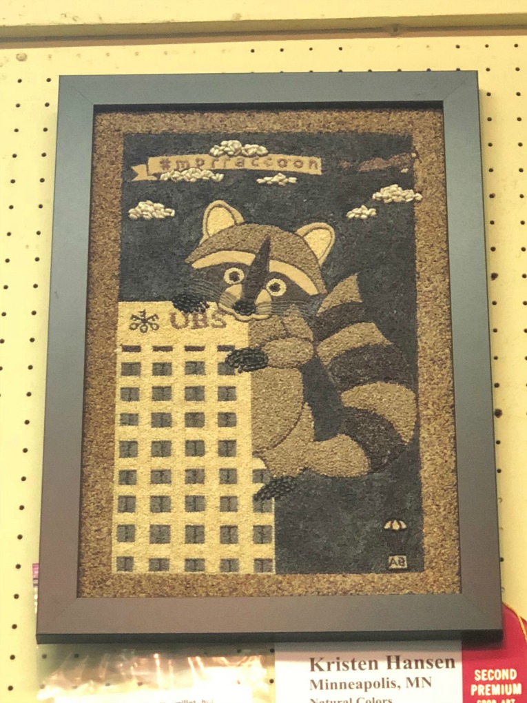 I also always enjoy the crop seed art in the agriculture building, like this one. Minnesotans sure loved that MPR Raccoon!
