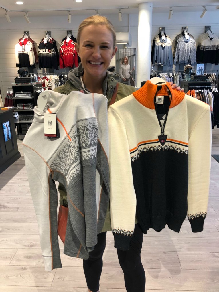 There was a fun exhibit at the outlet displaying all the Olympic sweaters over the years; all Norwegian winter Olympic athletes wear Dale of Norway apparel!