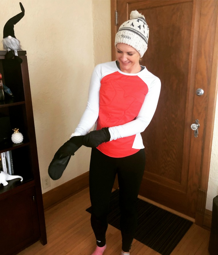 Sunday: 4 miles at a 9 min/mile pace, outside. I tested out some new Oiselle gear that I bought during a recent sale: the Power On Mittens, the Striped Pom hat, and the Flyout Insulated Baselayer.