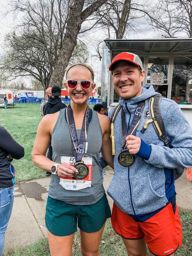 Unfortunately, spoiler alert, Brookings was not a PR for her. But she did finish her TENTH marathon and we still had a great time together.