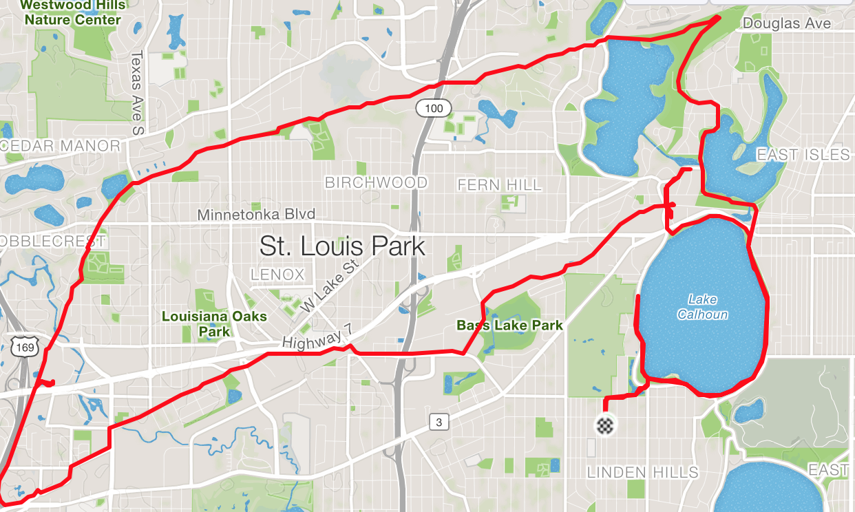 After work, I met an athlete I coach to do a workout with her. She is racing the TC 10k, which is part of the Twin Cities Marathon weekend events held on the Saturday before the marathon. I will be running the 10k with her, so we thought it made sense to run together at least once before race day! Her workout was 1 mile warm-up, 3×1 mile at goal 10k pace (10 min/mile) with 5 minute jog/walk recovery in between and then 1 mile cool-down. It was great to run with her! 5.5 miles total.