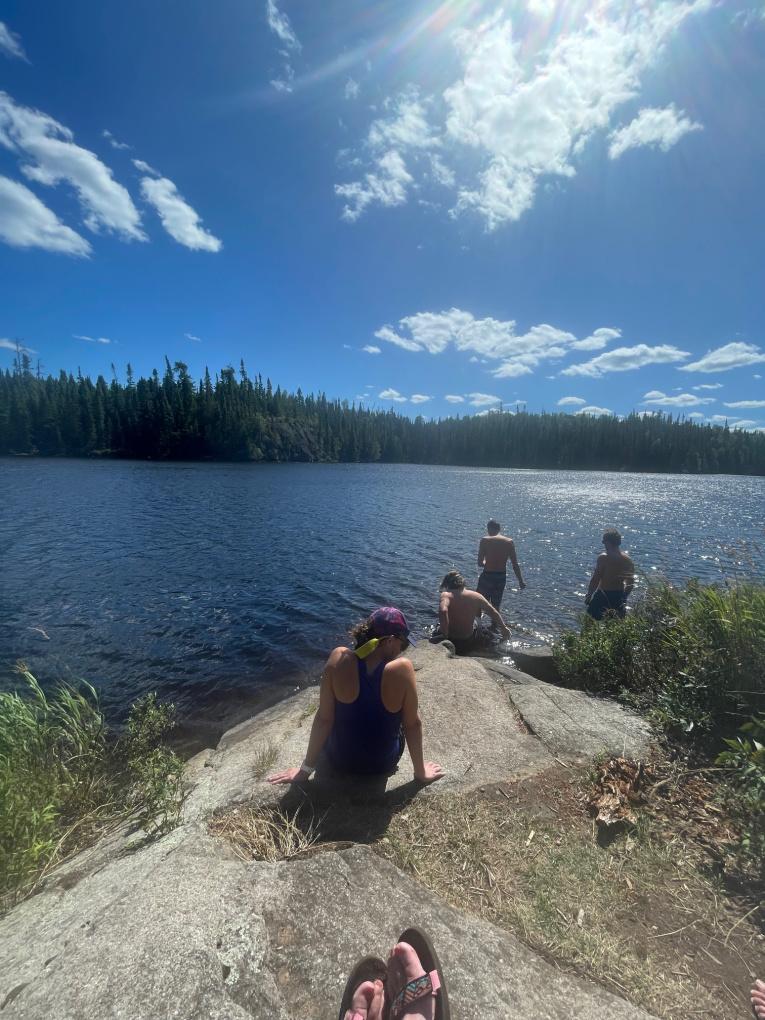 It was warm this day, so we took a dip in the lake before relaxing at the campsite.
