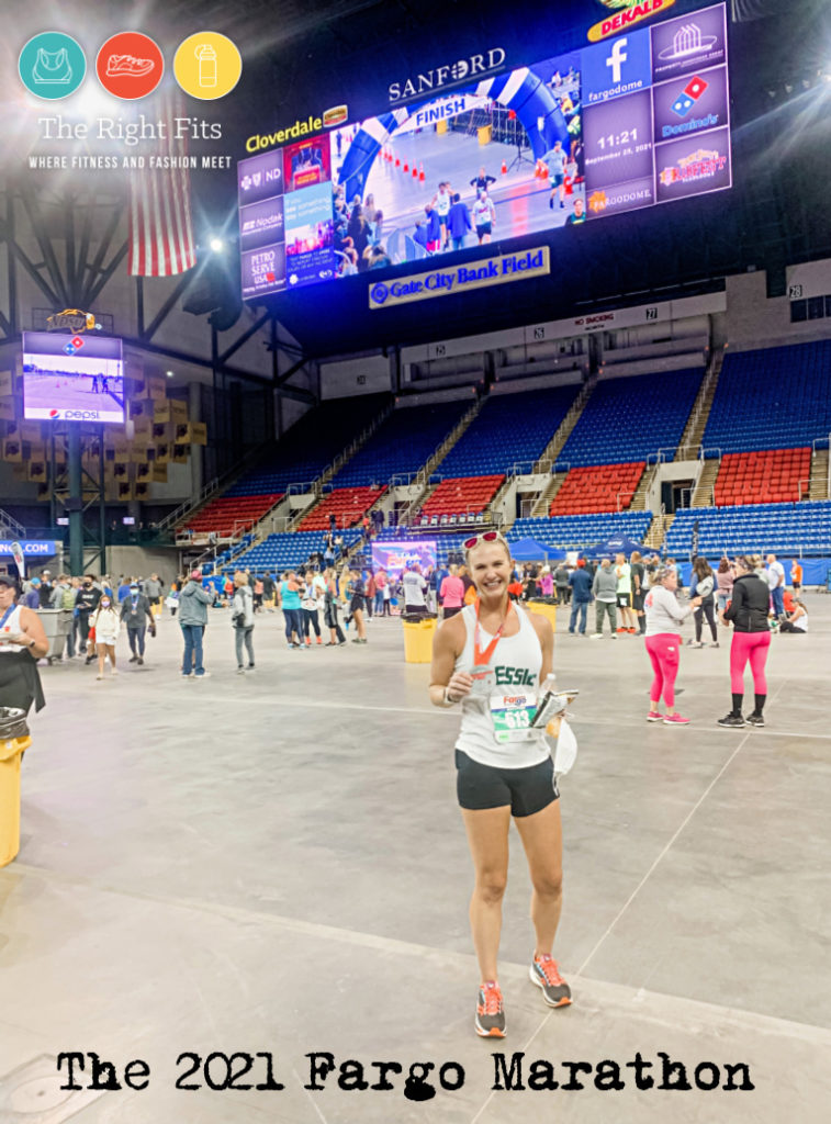 The Right Fit in Apparel! Since the start line is inside the Fargodome, I didn’t really need any extra throw-away layers, even though it was in the mid-40’s at the start. I had originally brought along a shirt to toss, but I gave it to Dustin before I went into the starting corrals.