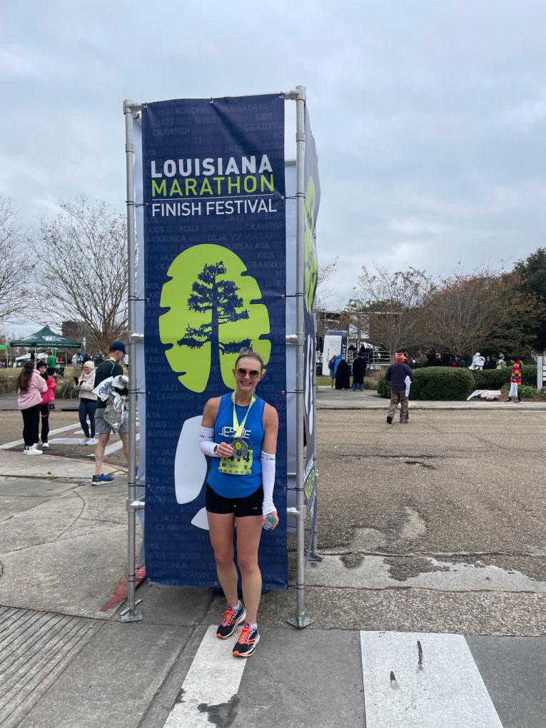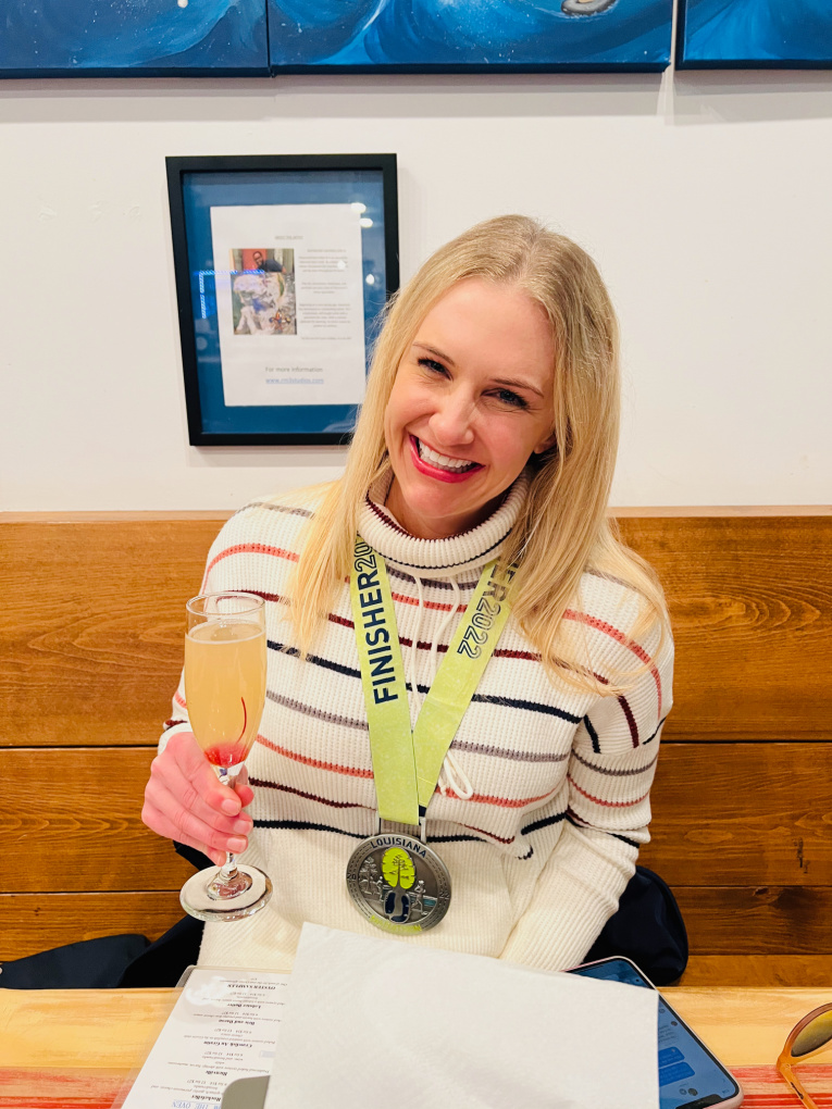 The finish line party was great, though it would have been more fun on a slightly warmer day (though the normal hot Louisiana weather might have made for a tough marathon, so there’s no perfect scenario, ha!)