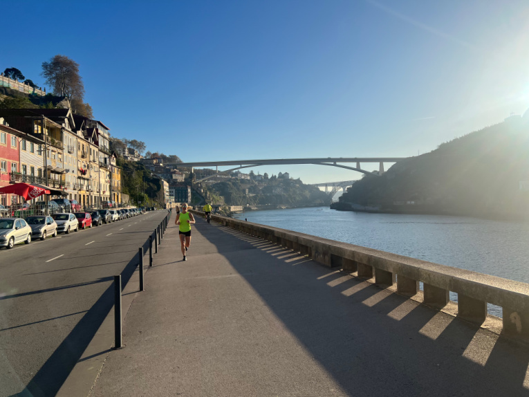 My husband and I ran the Porto half-marathon in September with a friend of mine and her husband that live a couple hours south in Portugal. It was mostly out and back on the flat road under all the bridges with just a few cobblestone sections. I completely agree with the false finishes. So many arches. It was the same when we ran the Rome marathon. I had no idea where the actual finish was.