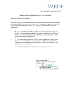 Trading-Advisor-Quarterly-Certificate-of-Compliance-Q3-2024_executed-electronically-for-Varde-by-Kevin-Medina October 4, 2024 By Jessie Benson Leave a Comment (Visited 20 time, 1 visit today)