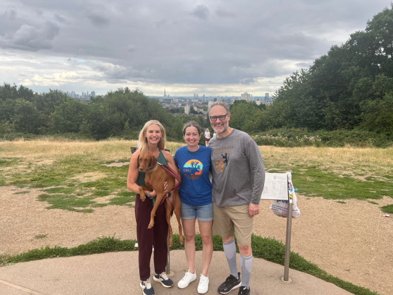 When our friends arrived, we took them for a chill walk around the Heath- Ruth wanted to show them “her” park! She and Matilda were buddies with their dog back in the states; I am sure she recognized them- and she was happy for new socks to steal to hide in her cozy cove! Naughty girl.