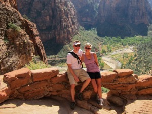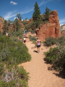 After the St. George marathon (which was amazing, by the way) my husband and I spent the following day hiking in Zion National Park. Hiking the day after 26.2 was pretty silly. Our quads were extremely sore (all that up-and-downhill in the race is tough on the legs), so we weren’t quite as limber as normal.