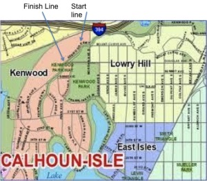 I don’t have the stats on the elevation for the hill. Mason tells me it’s over a 100 foot gain, which may not sound like much, but remember, that’s over just a half mile. And in Minneapolis, that’s a mountain! But it’s challenging for everyone. I dare all you SoCal bloggers to come do repeats on this hill and tell me our city is flat!