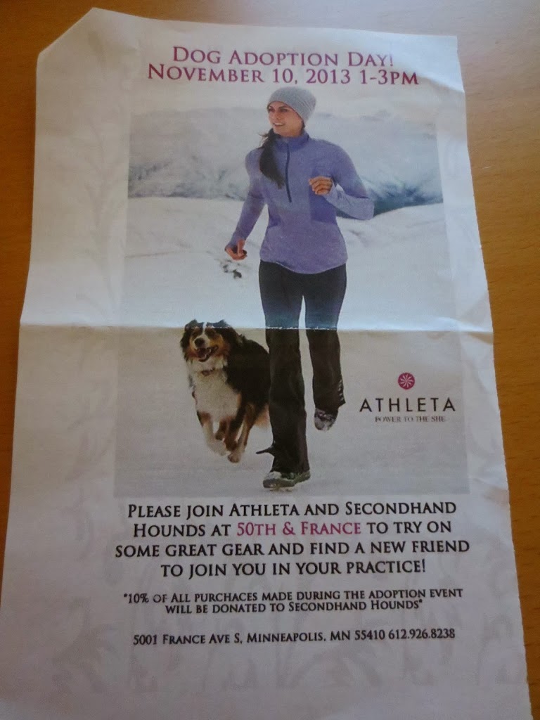 So, if you’re like me, and you love shopping and/or dogs, go to Athleta at 50th/France this Saturday, buy some of the awesome apparel they are carrying for winter, and help out a great cause.