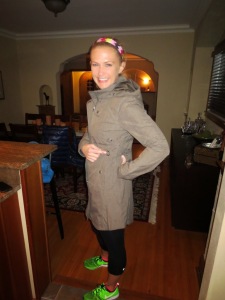 I know that it looks a little like the JCrew field jacket that I posted about for last week’s favorite fit, but it’s different, I swear! It’s waterproof, (which is awesome). It also has a bit more of an athletic look than the field jacket, and I swear its a different color than my field jacket; instead of olive green, it’s more of a grayish/brown color. I love the playful darts on the side that keep it snug, as well as the hood, which is great for a rainy day.