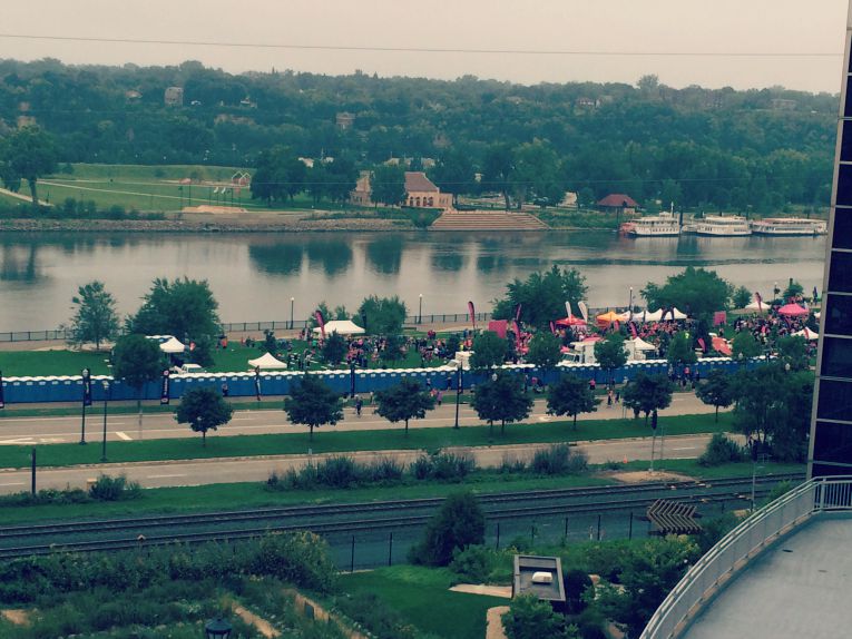 Packet pickup was a bit of a challenge for me, as it was only available on Friday from 11-7 pm in St. Paul at the River Centre. It was hard to get to St. Paul after work during rush hour traffic. There was the option to pay $30 to have my packet mailed to me ahead of time, but that seemed like a lot of money. You could also have a friend pick up your packet for you, but I was participating in this race alone. Packet pickup was definitely a “con” of this race for me, but it was my own issue; I understand why Team Ortho has their packet pickup at that location.