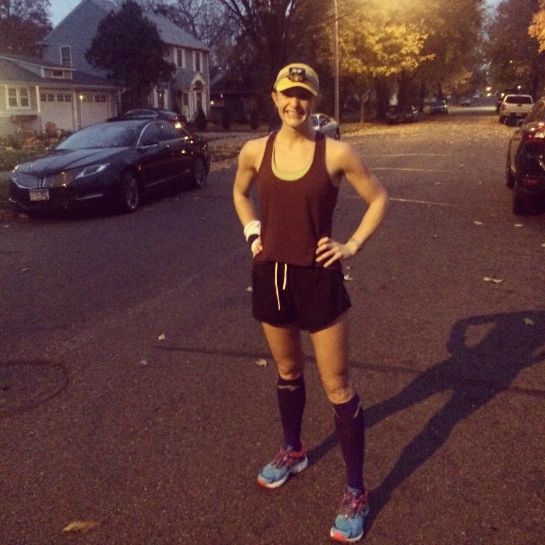 Thanks to my friend Christie for joining me. We were both pretty excited to still be wearing shorts in November. This fall has been amazing for running in Minneapolis. (Yes, I am wearing a head lamp– even with DST, it’s still dark in the morning when we start!)