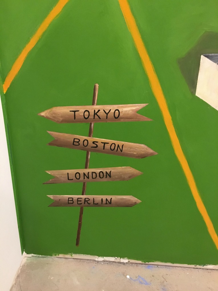 In the lower left are directional signs pointing to some of the international marathons we’ve completed, or for which we’ve both qualified and will hopefully run in the future (i.e. Boston- woot woot!)