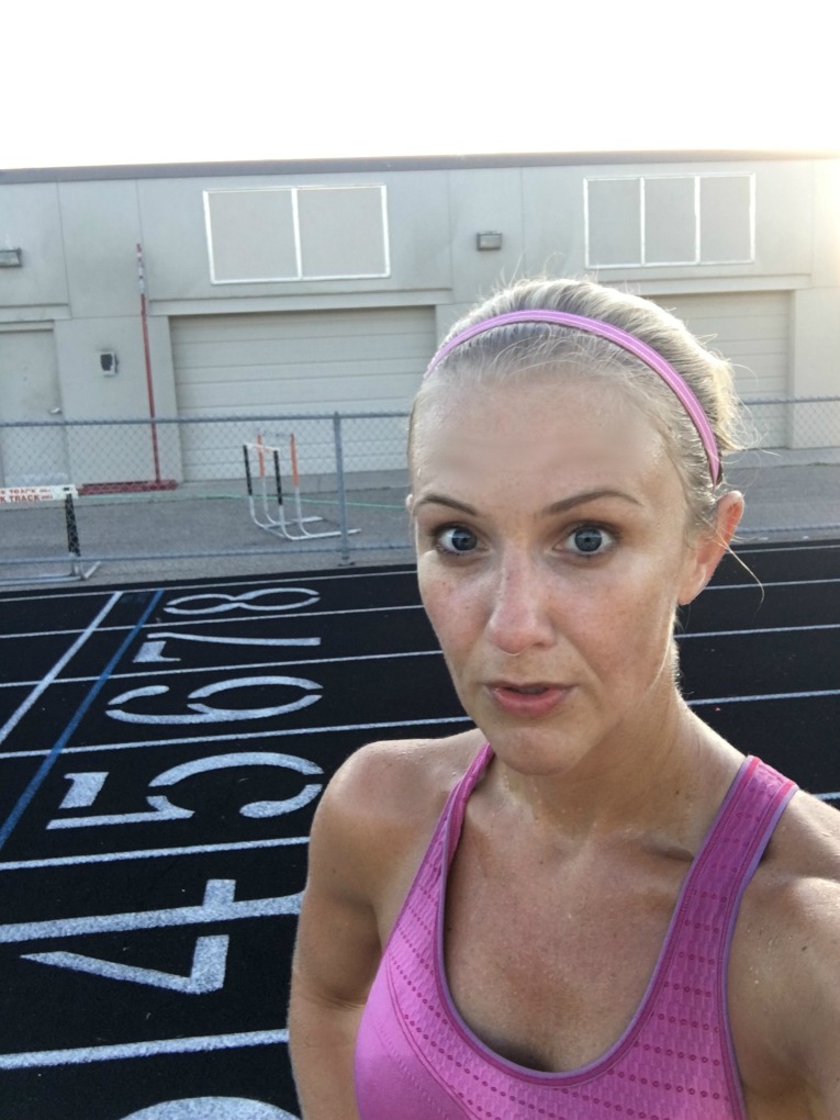 Something about being on the track, you feel focused and ready to work. I didn’t participate in track growing up, but I still get into the ‘track’ mindset. It also feels shorter running a quarter mile on a track than on a sidewalk, for whatever reason (it’s all mental!) It feels GOOD to push yourself hard on the track.