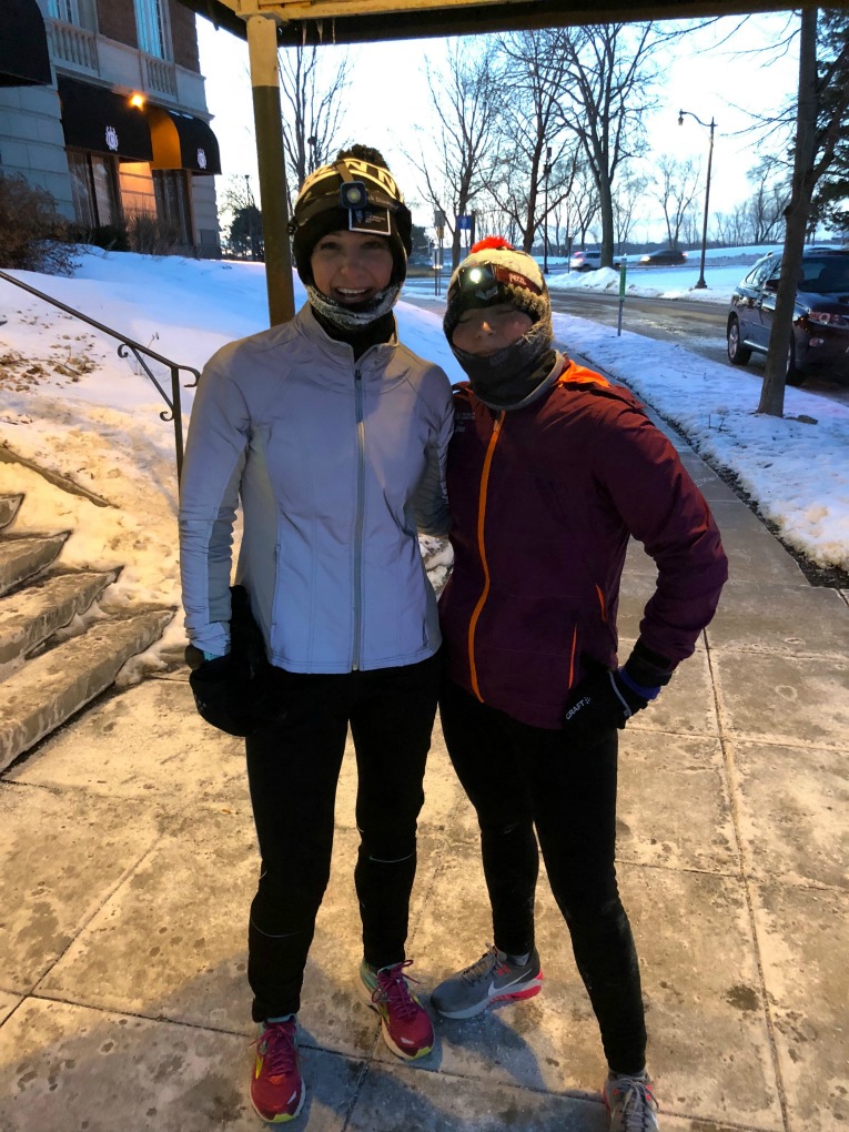 Friday: We had an 11 am flight to Colorado for a ski/snowboard trip with some friends, so I did my long run early Friday morning. Fortunately, my friend Christie had 9 miles on her schedule, so she joined me for some of it.
