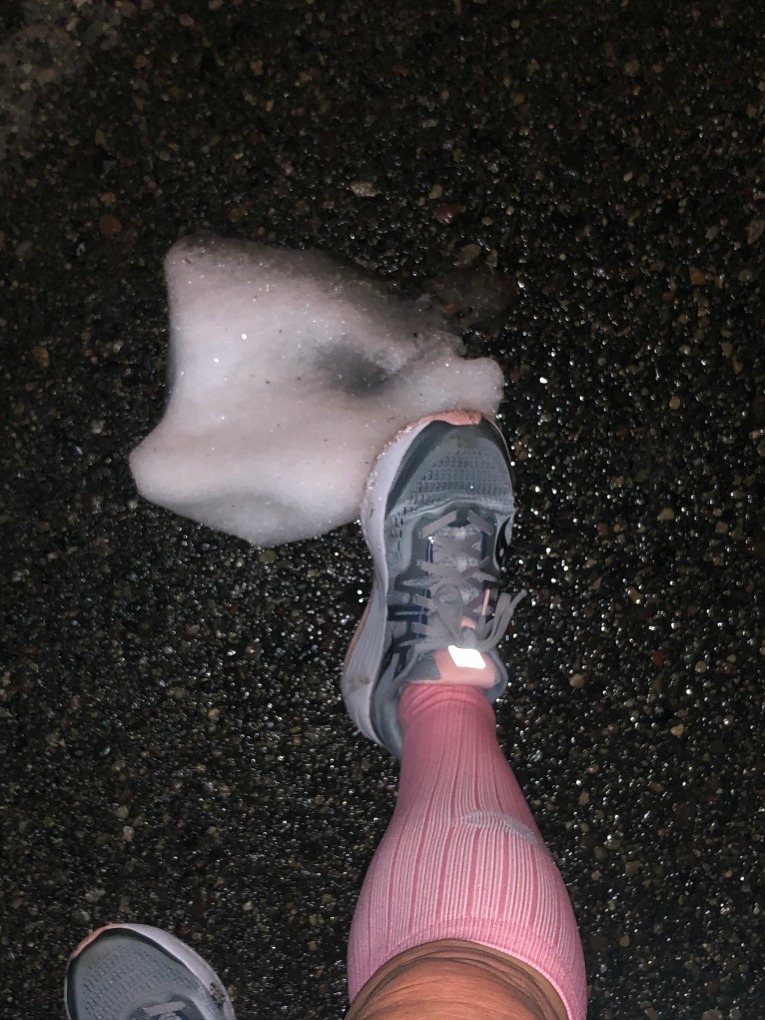 I thought I found snow on the run, but it was just some ice from a local hockey rink. Whew! (Little did I know, we’d have real snow the next day…)